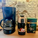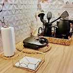 Το διαμέρισμα διαθέτει εξοπλισμένη μικρή κουζίνα για όσους επιθυμούν να μαγειρεύουν. Μπορείτε να απολαύσετε ένα φλιτζάνι τσάι στη βεράντα με θέα στον κήπο.